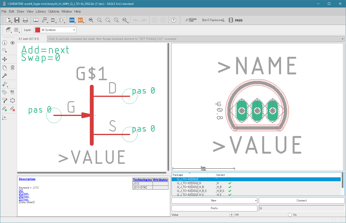 H_Q_J_TO-92_DSG.lbr トランジスター [H]H_Q_J_TO-92_DSG 2019.11.04 2019.10.20 Device J112J211-D74Z Foot-print J_TO-92[DSG]J_TO-92[DSG]_HJ_TO-92[DSG]_H_B