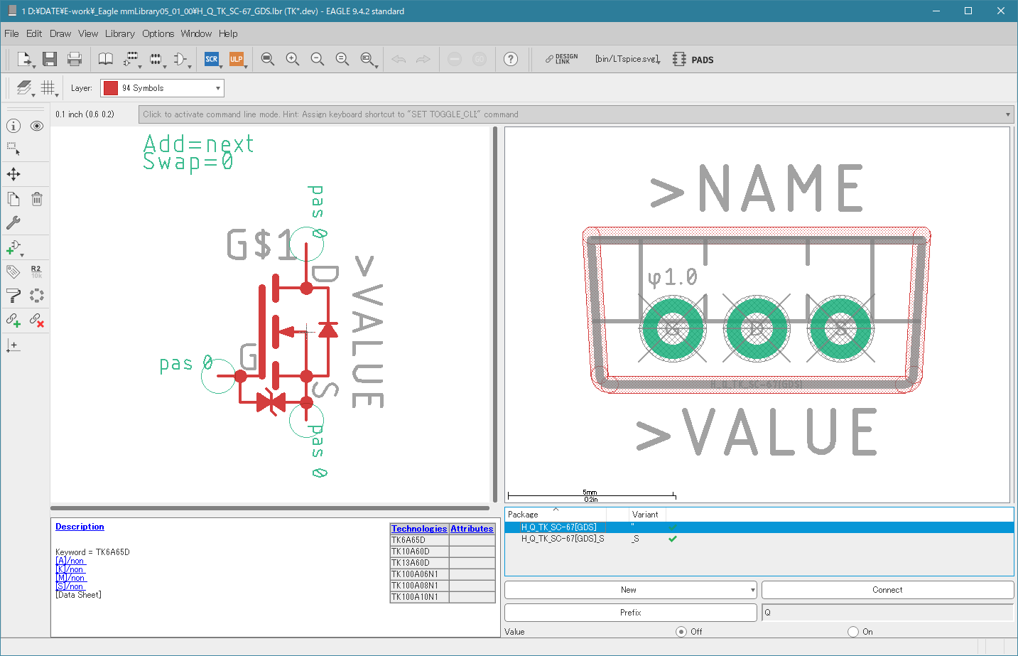 H_Q_TK_SC-67_GDS.lbr トランジスター [H]H_Q_TK_SC-67_GDS 2019.11.04 2019.10.20 Device TK6A65DTK10A60DTK13A60DTK100A06N1TK100A08N1TK100A10N1 Foot-print TK_SC-67[GDS]